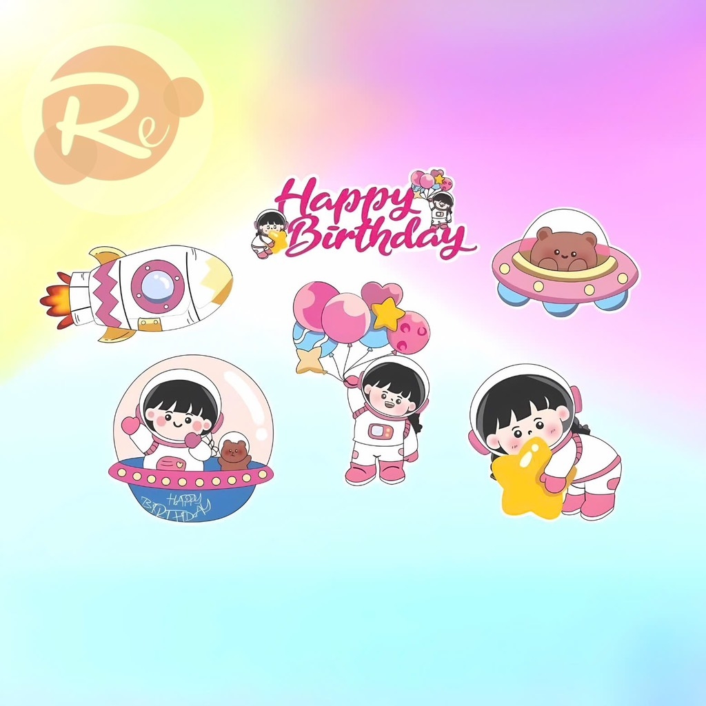 Topper HPBD hoạt hình - Mẫu 9